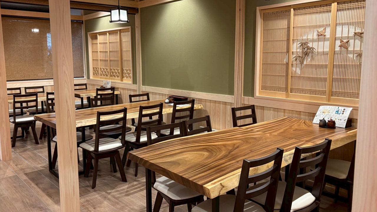 相撲文化を感じる店内で、木のぬくもりと落ち着いた和の空間、周りを気にせず過ごせるお席でおくつろぎください。